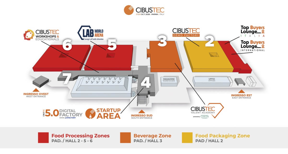Accanto ai due format verticali, Cibus Tec conferma la propria capacità di rappresentare in modo completo e credibile soluzioni per le principali filiere alimentari, dalle lavorazioni di frutta, vegetali, salse e condimenti, al lattiero-caseario, alle carni e all’ittico, fino ai piatti pronti, al caffè, al cioccolato e agli snack. Per tutti questi comparti la manifestazione offre una visione innovativa delle esigenze di processo dell’industria e relative soluzioni tecnologiche. Trasversali a tutte le filiere trovano spazio le piattaforme tecnologiche che oggi determinano competitività: packaging e fine linea, intralogistica e tracciabilità, automazione e robotica, digitalizzazione e dati, igiene e sicurezza alimentare, efficienza energetica e soluzioni per la sostenibilità ambientale. Un insieme integrato che permette alle aziende di progettare innovazioni di impianto con una visione completa, dalla produttività alla qualità.