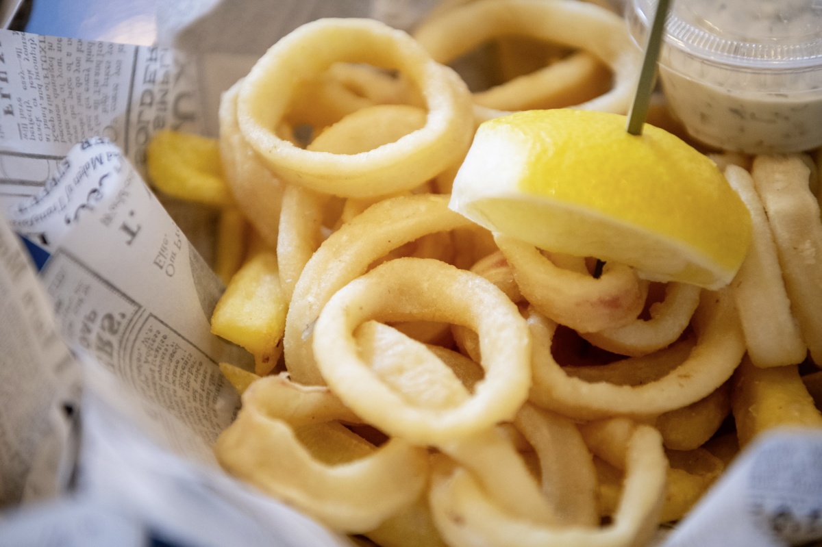 Il fish and chips la fa da padrone, con il merluzzo che viene proposto a tocchi grossolani, pastellato e fritto, disposto sopra una montagna di patatine fritte. Accanto al fish and chips, molto simile a quello che si trova sulle coste inglesi e scozzesi, rigorosamente da mangiare con le mani (o con lo stuzzicadenti), ci sono le tipicità delle fritture più nostrane: gli anelli di totano, ma anche i latterini, i gamberi e le alici, passate appena in farina di riso e poi fritte. Si può scegliere anche il gran fritto misto, che comprende tutte le tipologie. Tutti i piatti sono serviti con la salsa in abbinamento di due tipologie: una alla senape e miele, mentre l’altra è una rémoulade, anch’essa di ispirazione nordica.