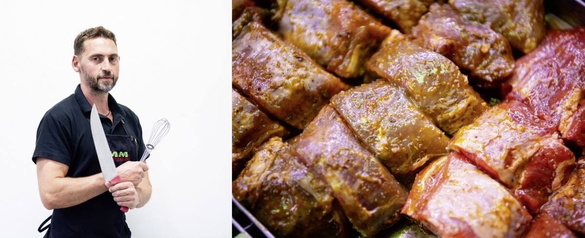 In foto: Lucio Motterlini, figlio d’arte, è un vero e proprio cuoco-macellaio. Grande conoscitore delle caratteristiche delle carni, della loro cottura e del loro utilizzo. Nella sua macelleria, otre ai tagli di carne fresca, offre tantissimi pronti a cuocere e marinati anche sottovuoto tutti artigianali. Da provare, i marinati alla paprika (photo © Matteo Zanardi).