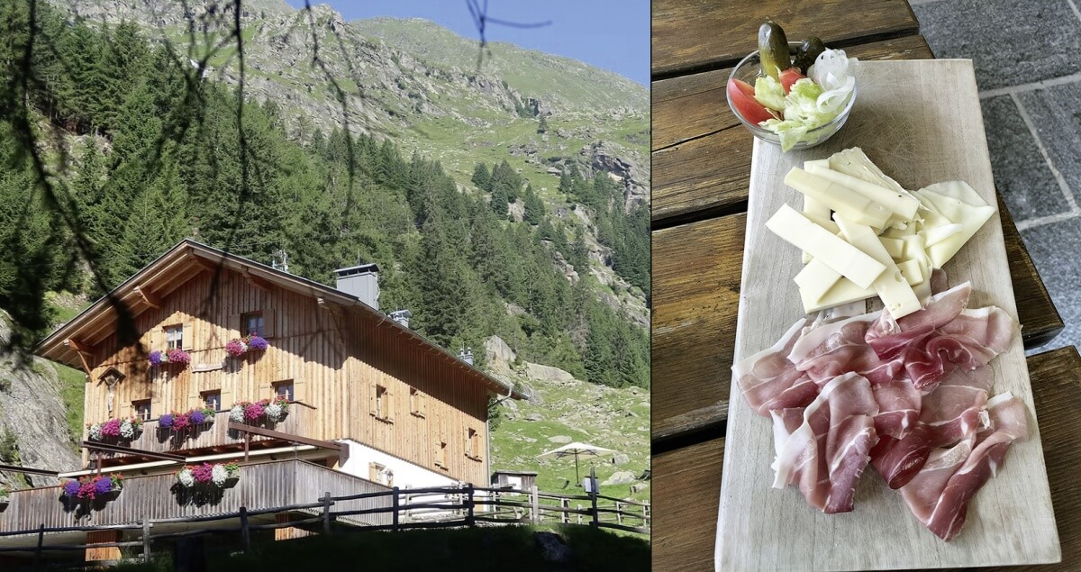 In foto: il Rifugio Nasereit nel Parco naturale del Gruppo di Tessa. Qui non manca mai il classico tagliere con lo speck.