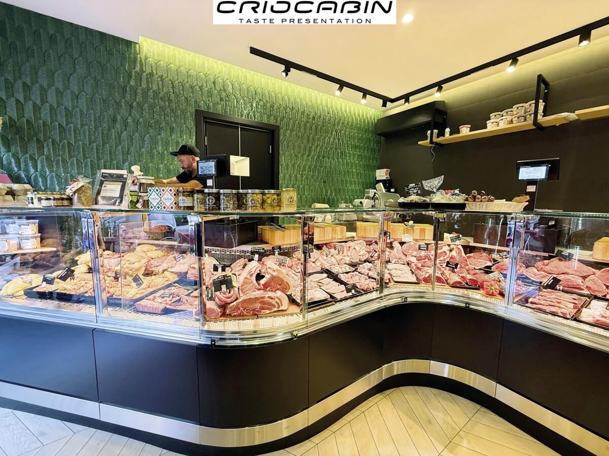 Fabrizio Santoro è un selezionatore di carni italiane ed estere di lunga e comprovata esperienza, con una storia di “famiglia” nel comparto dell’ingrosso carni. Ad accomunare i negozi, dunque, oltre alla vicinanza fisica a livello urbanistico, troviamo certamente la qualità dell’offerta di prodotto, legata all’esperienza della proprietà, la grande attenzione alle necessità di una clientela particolarmente esigente anche per ragioni strettamente mediche, come quella delle persone celiache o che in famiglia hanno un membro affetto da tale patologia, così diffusa negli ultimi due decenni (si stima che oggi 1 persona su 100 sia celiachia, ovvero l’1% della popolazione italiana, anche se la maggior parte dei casi si ritiene rimanga non diagnosticata, NdR) e, ultimi elementi, ma non certo per importanza, lo stile e la provenienza degli allestimenti espositivi e corrispondenti tecnologie. «Questo è il terzo negozio che faccio con Criocabin» mi racconta Fabrizio Santoro. «Anzi, ti dirò di più: per questa nuova avventura abbiamo rilevato una vecchia macelleria con 60 anni di attività alle spalle ricostruendola praticamente da zero e già questa bottega era cliente di Criocabin, come dimostrano le celle frigorifere tuttora in funzione. D’altronde, la stessa cosa era avvenuta anche per il nostro secondo punto vendita: anche in quel caso, l’attività rilevata era un vecchio cliente Criocabin, che si conferma anche da questi particolari come una delle aziende leader del suo settore».