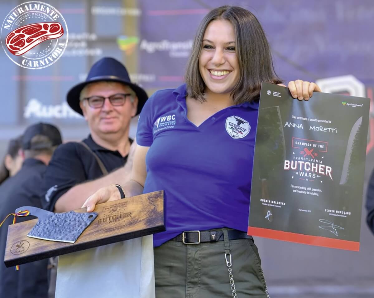 Non poteva che essere lei la “Naturalmente carnivora” di questo numero! La giovane macellaia toscana Anna Moretti, di Montevarchi (AR), con la Nazionale Italiana Macellai ha conquistato il primo posto alle Transylvania Butcher Wars, sfida a 16 tra i migliori professionisti delle carni provenienti da tutto il mondo e svoltasi a settembre nella cittadina di Cluj-Napoca, in Romania. A rappresentare l’Italia, per la prima volta nella storia, c’era un team tutto al femminile con Anna Moretti e Fabiana Gironi. A pagina 108 il reportage di Andrea Laganga.
