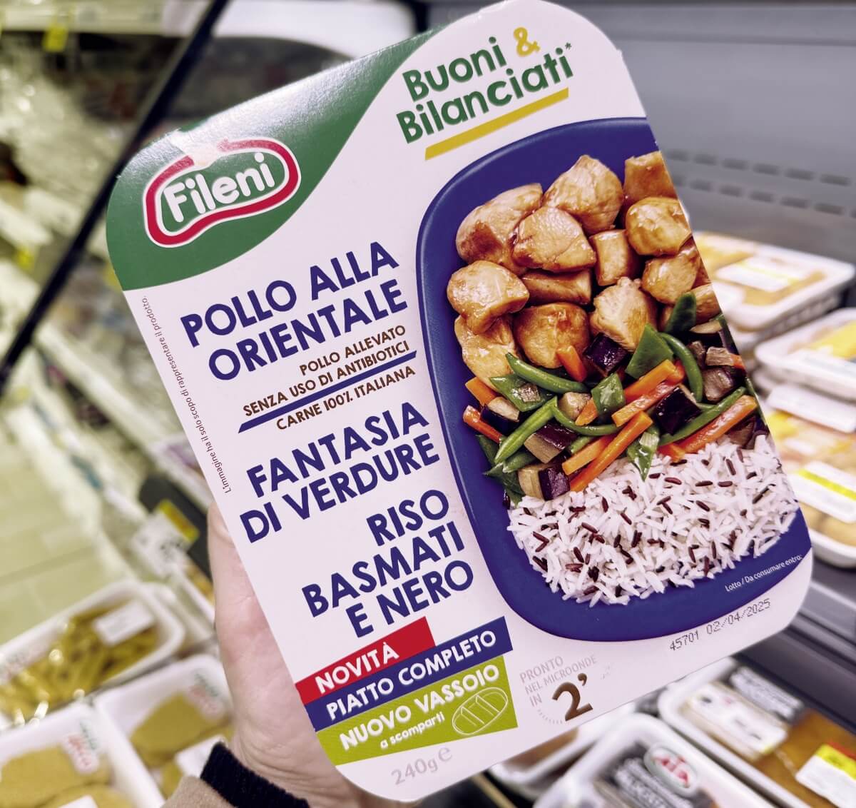 Il “Pollo alla orientale, fantasia di verdure con riso basmati e nero” di Fileni (fileni.it) mette d’accordo chi è alla ricerca di un piatto unico bilanciato tra proteine animali, verdure e carboidrati e chi ama i sapori tipici della cucina asiatica. Fa parte della nuova linea di piatti pronti Fileni “Buoni & Bilanciati”, con cui l’azienda vuole rispondere in maniera smart ai consumatori che cercano praticità, leggerezza e gusto in un pasto nutrizionalmente bilanciato. Gli alimenti si presentano in un comodo vassoio diviso in scomparti, al fine di valorizzarne aspetto e sapore finale. Il prodotto è da consumarsi previa cottura al microonde (2 minuti) o in padella (4 minuti). Pack da 240 grammi.