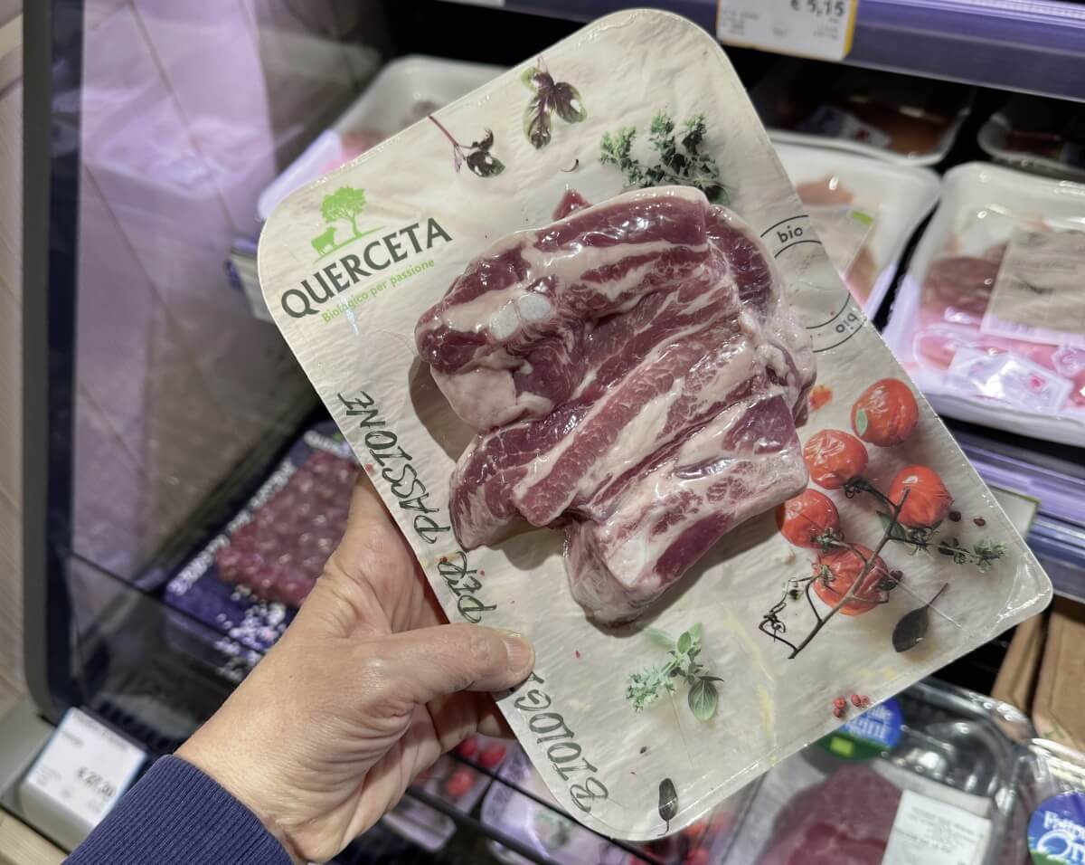 “Il metodo di produzione biologico rispetta il benessere animale, segue sistemi naturali di allevamento” mette in evidenza l’azienda Querceta (www.quercetaselection.it) sul retro dello skin pack di costine di suino nero bio allevato allo stato brado. L’84,8% dei prodotti venduti in supermercati e ipermercati italiani racconta in etichetta di essere attento all’ambiente, all’impatto sociale o al benessere animale: si tratta di un paniere di circa 117.000 referenze che sviluppa 44,4 miliardi di vendite, in crescita annua di +3,6% a valore e in calo di –1,6% a volume, evidenziando un aumento di 1,6 punti nella percentuale di prodotti a scaffale. A rilevarlo è l’Osservatorio Immagino di GS1 Italy che, nella sua 16a edizione, prosegue la lettura dei claim relativi alla sostenibilità sui prodotti di largo consumo, realizzata in collaborazione con l’Istituto di Management della Scuola Superiore Sant’Anna di Pisa. Fra le tre aree identificate dall’Osservatorio Immagino, a prevalere è quella della sostenibilità ambientale riferita al prodotto o al suo packaging (116.950 referenze): le informazioni più diffuse riguardano le indicazioni pratiche (presenti sul 77,9% dei prodotti), le caratteristiche ambientali (67,1%) e le modalità green di produzione e approvvigionamento (14,9%). Seconda area per numero di prodotti e valore delle vendite, ma prima per performance, è quella relativa alla sostenibilità sociale. Infine, le indicazioni relative al benessere animale, presenti solo sul 2,0% dei prodotti rilevati dall’Osservatorio Immagino.