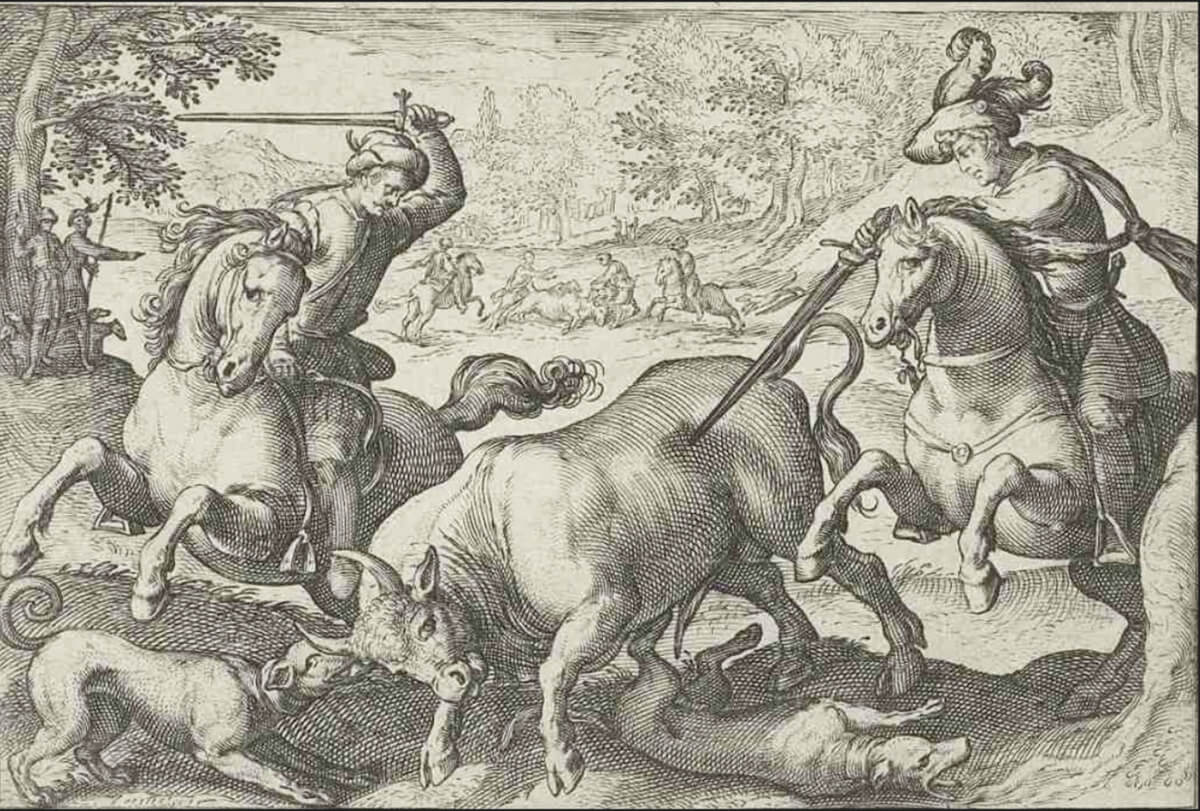 A pagina 140, Antonio Tempesta, Caccia al toro, 1598, acquaforte, fonte: www.triesteallnews.it