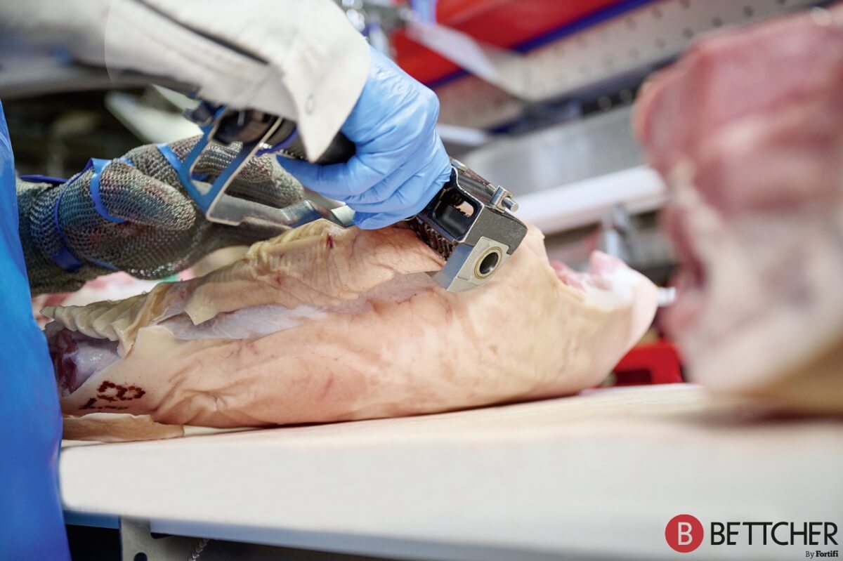 Negli stabilimenti di Garrel e Oldenburg l’azienda si impegna a migliorare la produttività oraria per aumentare l’efficienza dei costi. Allo stesso tempo, pone grande attenzione alla salute e al benessere dei dipendenti, al fine di ridurre al minimo le assenze per malattia e il turnover del personale. «Gli strumenti del nostro partner di lunga data Bettcher Industries sono una componente fondamentale del nostro successo» afferma Dennis Burke, membro della direzione del Gruppo Goldschmaus. «Sono veloci, a basso consumo energetico, richiedono poca manutenzione e sono progettati ergonomicamente. Questo aumenta la resa della carne e riduce i costi operativi». Bettcher, fornitore leader mondiale di utensili da taglio e rifilatura per applicazioni industriali, supporta il Gruppo Goldschmaus dalla sua sede europea, Bettcher GmbH, con sede a Dierikon, Svizzera. La stretta collaborazione è iniziata circa vent’anni fa con l’utilizzo dei coltelli circolari Bettcher nella linea di produzione di carne suina. Gli strumenti, perfettamente adattati alle esigenze dell’industria della carne, hanno permesso di migliorare continuamente i processi di lavoro e l’ergonomia nell’impianto di lavorazione della carne. Convinto dall’introduzione dei coltelli circolari Bettcher, il Gruppo Goldschmaus ha continuato ad ampliare e aggiornare il proprio parco macchine Bettcher nel corso degli anni.