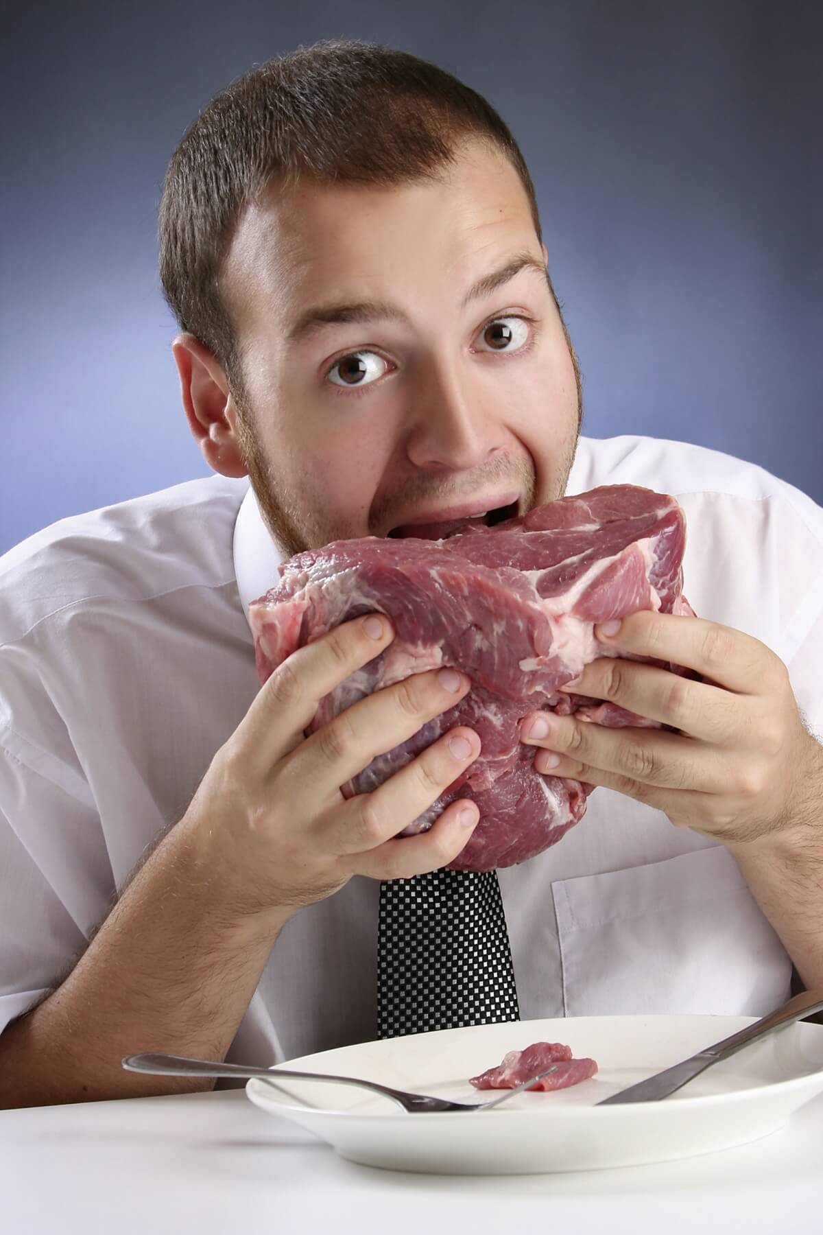 Studiando l’evoluzione degli ominidi, tipica è la diminuzione delle dimensioni della mandibola e un aumento del cervello. Molti ricercatori interpretano i cambiamenti della mandibola come dovuta a un aumentato consumo di carne, mena dura degli alimenti vegetali e più facile da masticare. Un aumentato consumo di carne favorisce un aumento delle dimensioni del cervello e un cervello più grande significa maggiore intelligenza, ma ha bisogno di più energia, che può essere soddisfatta da un maggior consumo di carne, un alimento più efficiente dal punto di vista energetico rispetto ai vegetali.