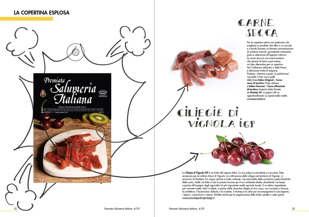 Per la copertina estiva non potevamo che scegliere un prodotto che offre in un piccolo e comodo formato un’elevata concentrazione di proteine naturali, garantendo nutrimento, gusto e attenzione all’apporto calorico. La carne secca è uno snack proteico che spezza la fame e può essere un’idea alternativa per un aperitivo. Noi l’abbiamo abbinata a della fresca e dolcissima frutta di stagione. Proteine, vitamine e gusto, la perfezione! I prodotti in foto sono quelli delle linee Italian Original – Carne secca di tacchino Chips italiane e Italian Gourmet – Carne affumicata di tacchino Superior Jerky firmate da BeJerky Srl. A pagina 48 un approfondimento su questa bella realtà.