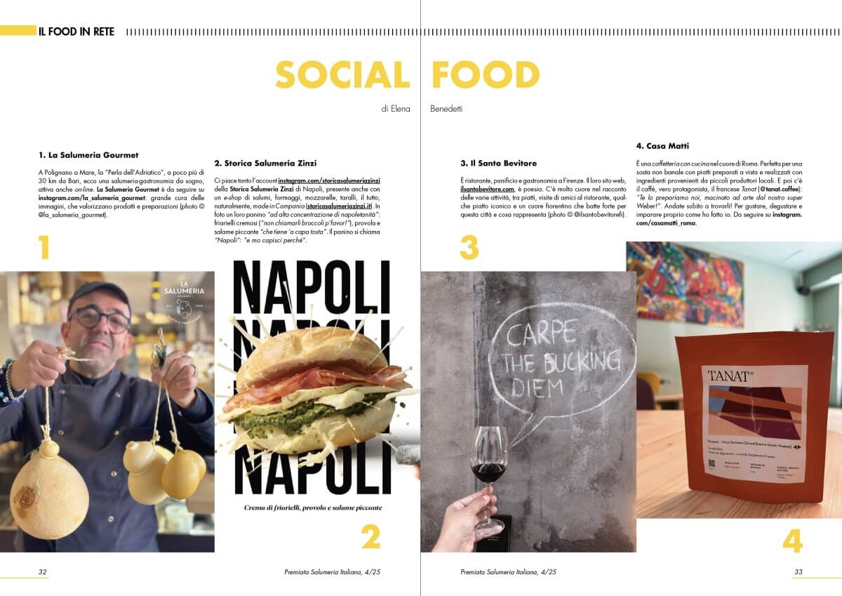 Ci piace tanto l’account instagram.com/storicasalumeriazinzi della Storica Salumeria Zinzi di Napoli, presente anche con un e-shop di salumi, formaggi, mozzarelle, taralli, il tutto, naturalmente, made in Campania (storicasalumeriazinzi.it). In foto un loro panino “ad alta concentrazione di napoletanità”: friarielli cremosi (“non chiamarli broccoli p’favor!”), provola e salame piccante “che tiene ‘a capa tosta”. Il panino si chiama “Napoli”: “e mo capisci perché”.
