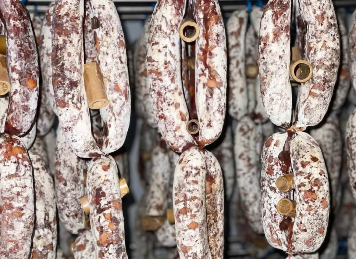 In foto: le salsicce a catena di Cancellara da capi di suino Nero Lucano allevati allo stato brado da Bioagrimar, di San Procopio – Genzano di Lucania, Potenza (photo © @bioagrimar).