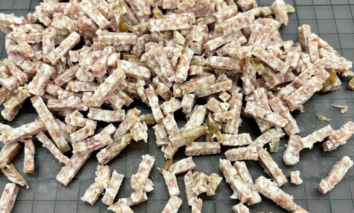 «La consistenza del salame richiedeva un approccio preciso» racconta Marko Försti, responsabile dello sviluppo di Huhtahyvät. «I test nel laboratorio di FAM STUMABO sono stati fondamentali per individuare la combinazione ottimale di macchina e temperatura». Sono seguite prove pratiche direttamente nello stabilimento di Huhtahyvät, utilizzando una Flexifam 55 a noleggio per adattarsi ai lunghi tempi di polimerizzazione del prodotto. Dopo test rigorosi è stato scelto un taglio di 5x5x15 mm. Il team di FAM STUMABO ha offerto supporto in loco: «Siamo stati presenti con il nostro partner Forsfood per assistere Huhtahyvät, spiegando nel dettaglio l’utilizzo della macchina per ottenere i migliori risultati. Questo ha giocato un ruolo chiave nella loro decisione finale». «Poter testare sia in laboratorio sia sul campo ci ha dato piena fiducia» conferma Päivi Uotila, responsabile di produzione di Huhtahyvät. «La Flexifam 55 si è dimostrata subito la soluzione perfetta per le nostre esigenze».