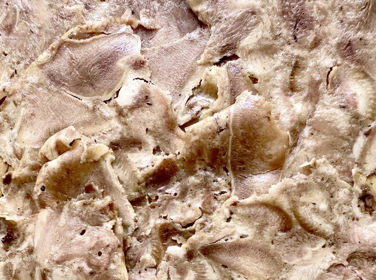 La texture di un salume è un indicatore della sua qualità e del processo di lavorazione a cui è stato sottoposto. Possiamo capirne gli ingredienti, soppesare la consistenza con lo sguardo e immaginare quale sarà il suo sapere all’assaggio. Per questo numero abbiamo scelto la Coppa di testa, un salume cotto tradizionale delle regioni Emilia-Romagna e Marche, ma presente in diverse varianti, di nome e ingredienti, anche in Toscana, Abruzzo, Umbria, Lazio, Piemonte e Liguria e Sardegna. La testa disossata del suino e la lingua sono i due tagli principali utilizzati per la sua produzione. Morbida e molto, molto saporita, si mangia affettata sottile, con pane rustico o altri prodotti da forno, ma è buonissima anche a cubetti su un tagliere da aperitivo.