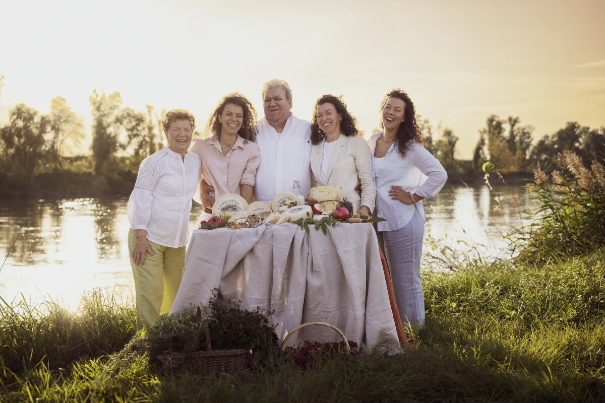 In foto: la famiglia Morandi con alcuni formaggi prodotti dal Caseificio Morandi di Anguillara Veneta (PD).