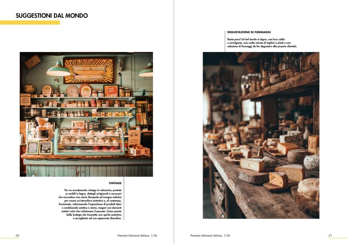 Per un arredamento vintage in salumeria, puntate su mobili in legno, dettagli artigianali e accessori che raccontino una storia (lampade ed insegne antiche) per creare un’atmosfera autentica e, al contempo, funzionale, valorizzando l’esposizione di prodotti tipici e combinando estetica e storia, magari con elementi estetici retrò che richiamano il passato. Come questa bella bottega che trasmette uno spirito genuino e accogliente nel suo apparente disordine.