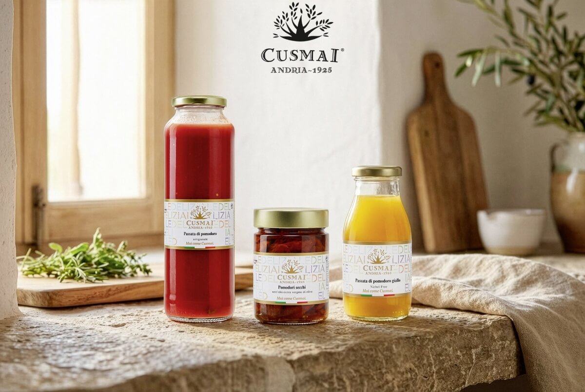 Dalle passate ai filetti di pomodoro, dai pelati ai ciliegini fino ai sughi, ai pomodori secchi e alle verdure sottolio, melanzane, carciofi, funghi cardoncelli, lampascioni e olive tipiche come la Bella di Cerignola e la Sant’Agostino: ogni prodotto segue ancora la ricetta di nonna Grazia. Perché la tradizione, in casa Cusmai, non è nostalgia: è responsabilità verso il futuro.
