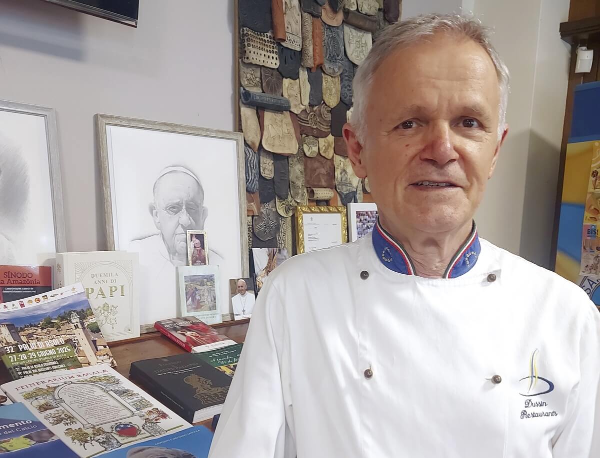 Dussin è stato anche il regista gastronomico di incontri delicatissimi, come quello tra Leone XIV e le autorità religiose mondiali nel 2025. «È stato un servizio impegnativo. I musulmani avevano il loro tavolo circondato da separè alti per non vedere il vino degli altri. Per loro studiai un menù dedicato, senza carni, per evitare ogni idea di contaminazione: tortino con asparago e fonduta, pasta pomodoro e olive, formaggio Asiago e tosella del Grappa e torta alle fragole. Per gli altri, bresaola di manzo con asparagi marinati, risotto e tagliatelle fresche con pancetta e speck e torta alle fragole. La cucina deve unire, non dividere. E vedere personalità come il Cardinale Pietro Parolin a tavola dà soddisfazione: ha un rispetto enorme per il cibo».