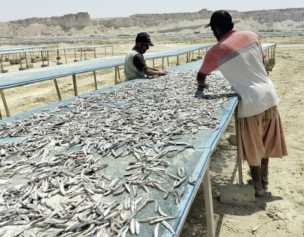 Una volta lavate, entro un’ora dalla pesca le acciughe sono trasportate ai luoghi di essiccamento all’aperto in cassette di plastica da appositi camion. Le cassette sono scaricate direttamente sulla rete e il personale provvede a stenderle a mano su reti sostenute da trespoli che hanno il compito di facilitare la circolazione dell’aria. Seddigh Tarian, uno dei gestori del negozio di prodotti tipici Abu Advieh Yater a Holor, spiega che «trascorsi quindici giorni all’aperto, il pesce viene ridotto in polvere con cumino e coriandolo. La riduzione in polvere è pratica per il trasporto e adatta alla personalizzazione di ciascuno. Infatti, si possono aggiungere aromi diversi, come finocchio e senape o aceto e succo di limone. In commercio esiste anche la versione già liquida, ottenuta aggiungendo dell’acqua calda alla miscela di sapori e fatta fermentare al sole per tre settimane, sino al raggiungimento dell’aroma desiderato. Chi la produce da sé ha l’accortezza di agitare il liquido ogni giorno».