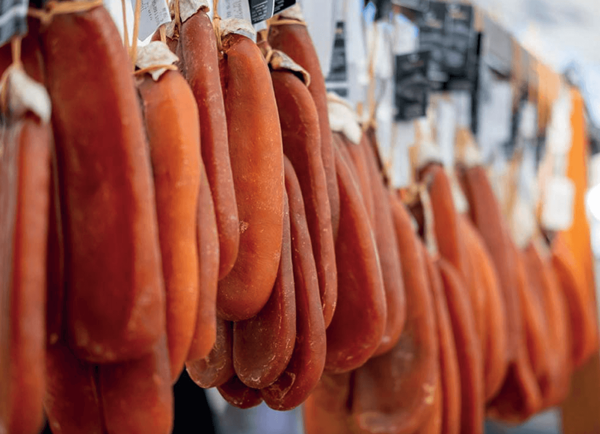 Ma a Cabras il muggine non si trasforma solo in bottarga. Esistono altri tesori, meno noti ma altrettanto preziosi. La mercà, per esempio, è un omaggio ai Fenici: il pesce, intero o a pezzi, viene avvolto nelle foglie della zibba — una pianta marina coltivata apposta — e lasciato riposare. Così si conserva, così profuma, così attraversava il Mediterraneo nei viaggi degli antichi. Ancora oggi, dopo venticinque giorni, sprigiona l’aroma salmastro e la carne soda e marezzata che conquistava i mercanti sulle rotte tra Cartagine e la Sardegna. E poi c’è il pisci affumau, il muggine affumicato: sfilettato, salato in salamoia, infilzato con giunchi, lasciato asciugare al vento, poi affumicato lentamente con erbe della laguna. Un rito lento, quasi sacro, che un tempo si faceva solo a Pasqua.