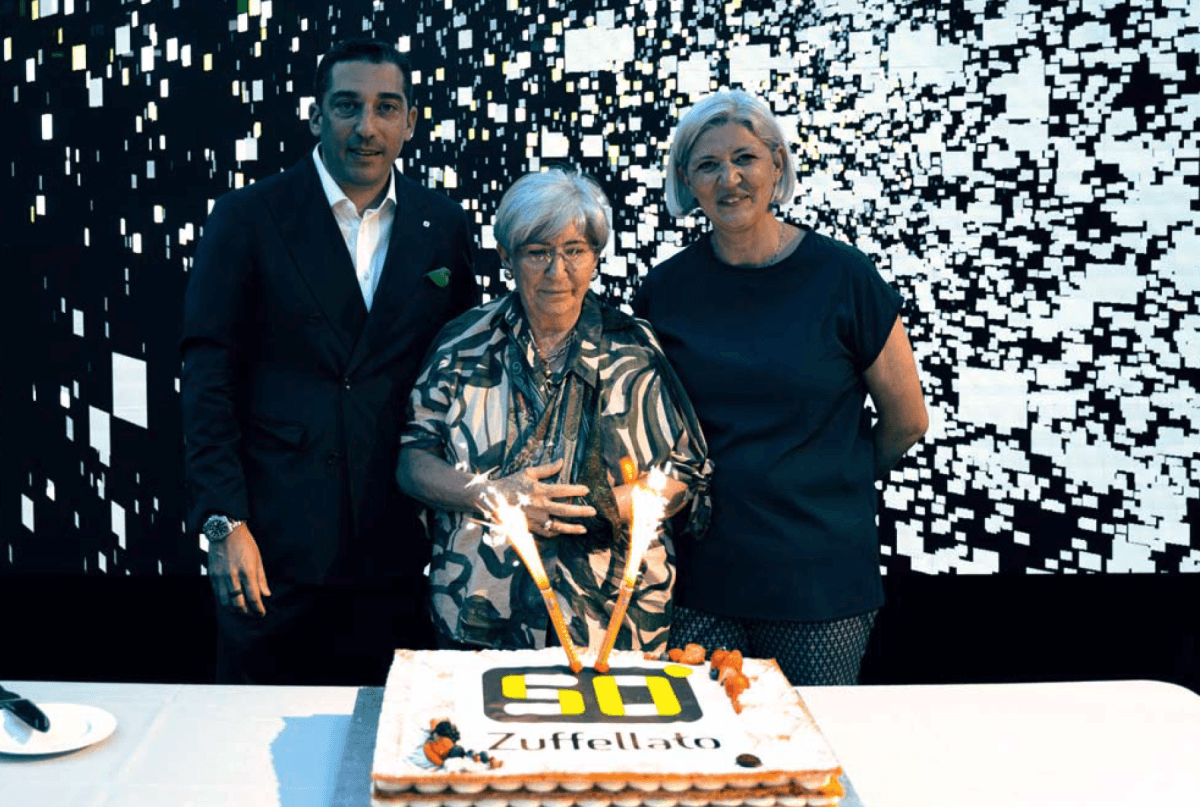 In foto, alle celebrazioni dei 50 dell’azienda di famiglia, Enrico e Barbara Zuffellato con la madre Vittorina Nori.
