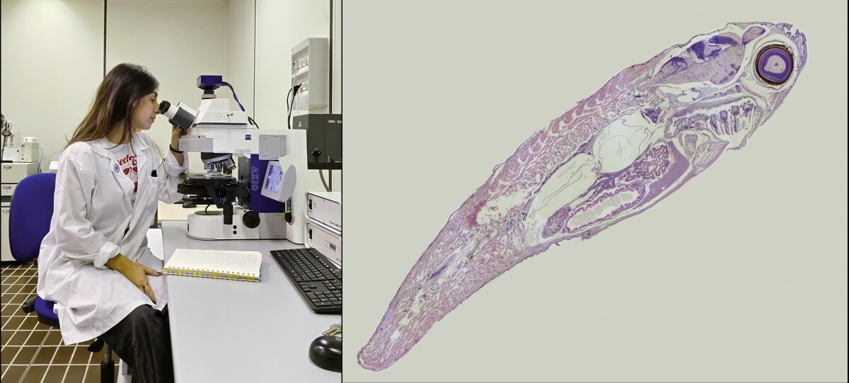 In foto: applicazione di tecniche istologiche e molecolari da parte del Gruppo di Acquacoltura presso UNIVPM.